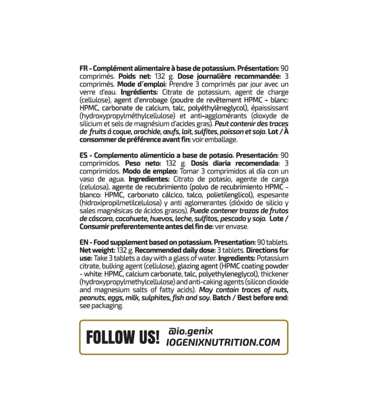 Avec seulement 3 comprimés de citrate de potassium, on obtient 1 g de potassium (50 % VRN)