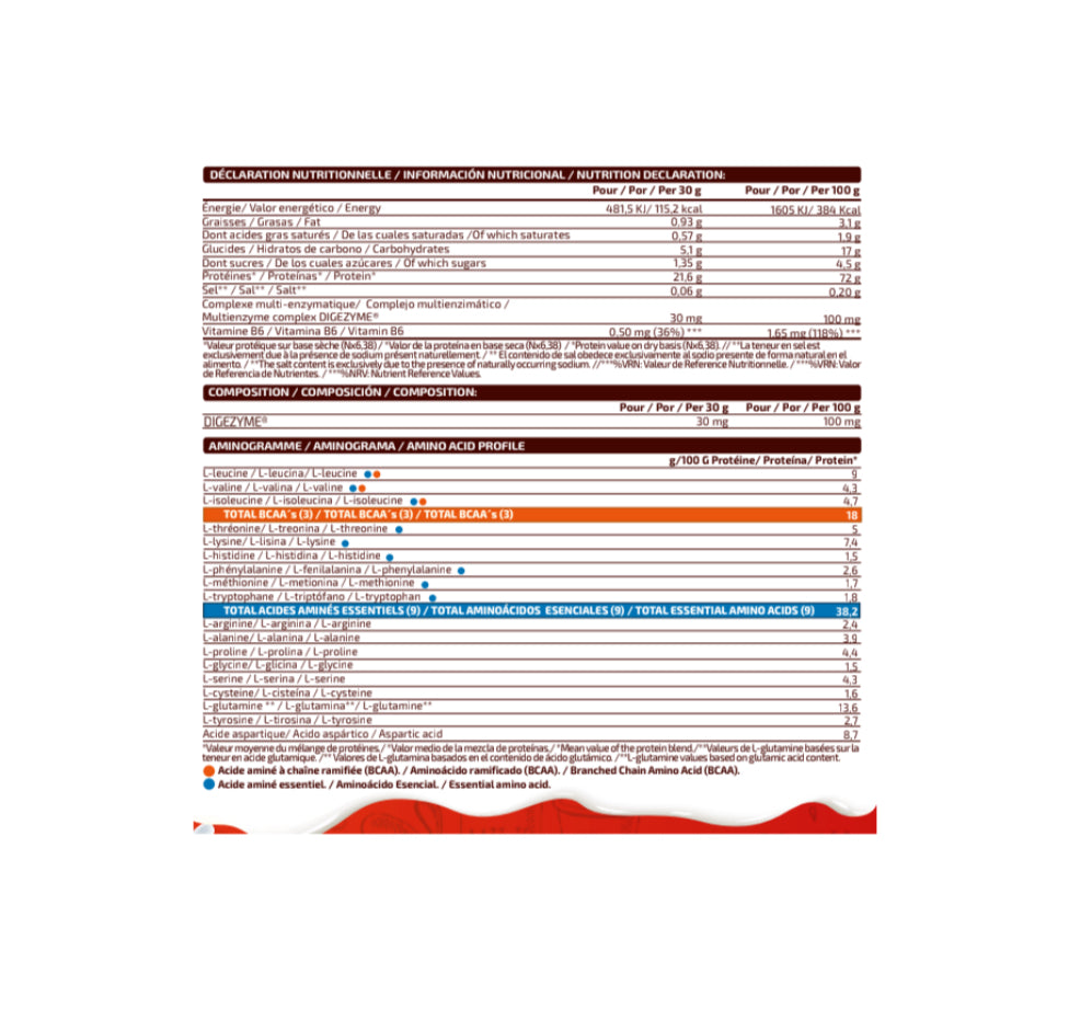 Un brevet à base d'enzymes digestives telles que l'amylase, la protéase, lactase, la lipase et la cellulase, contribuant à la décomposition et à l'absorption des nutriments de WHEY SUBLIME